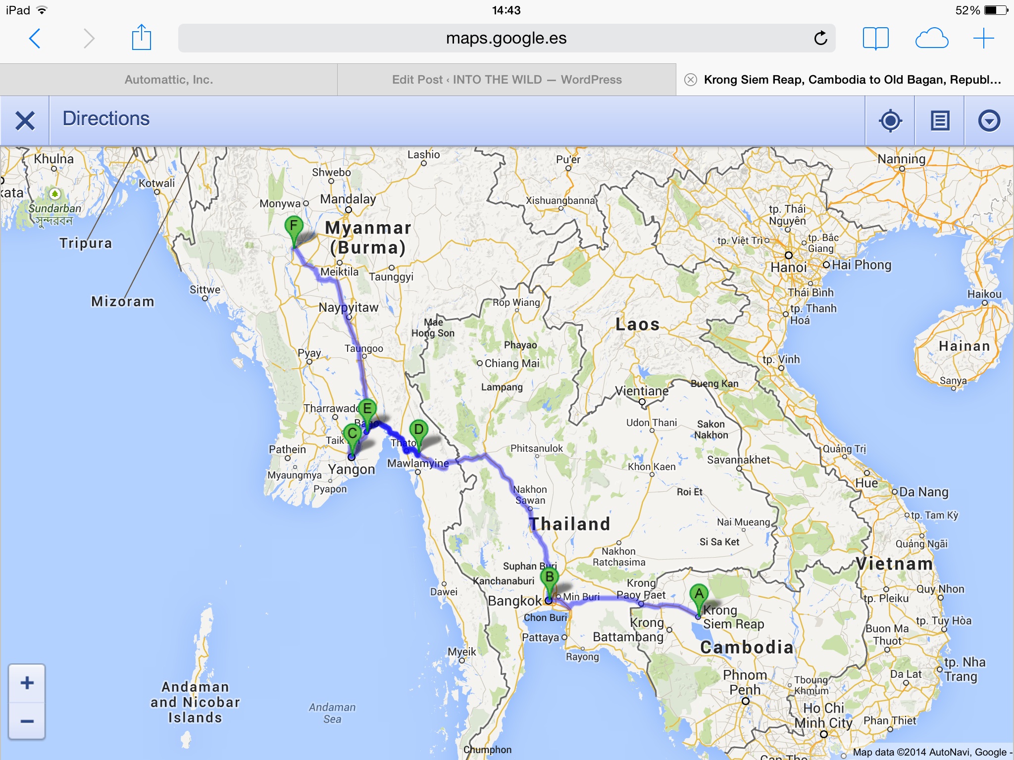 I will write about Myanmar in two parts, since there are 25 days of experiences to tell you and I know you don’t like to read too much at once. Today’s post covers around 2700 km from Siem Reap (point A – still Cambodia) where last post finished, to Bangkok (point B – we took 45 min flight, won’t talk about it since we just went there to arrange visa for Myanmar) than capital of Myanmar Yangon (point C – 1 h flight from Bangkok). Next stop was cute little town Hpa-an (point D – 8 h bus drive), than Bago (point E – 7 h bus drive) and last stop of todays post Bagan (point F – 10 h bus drive).