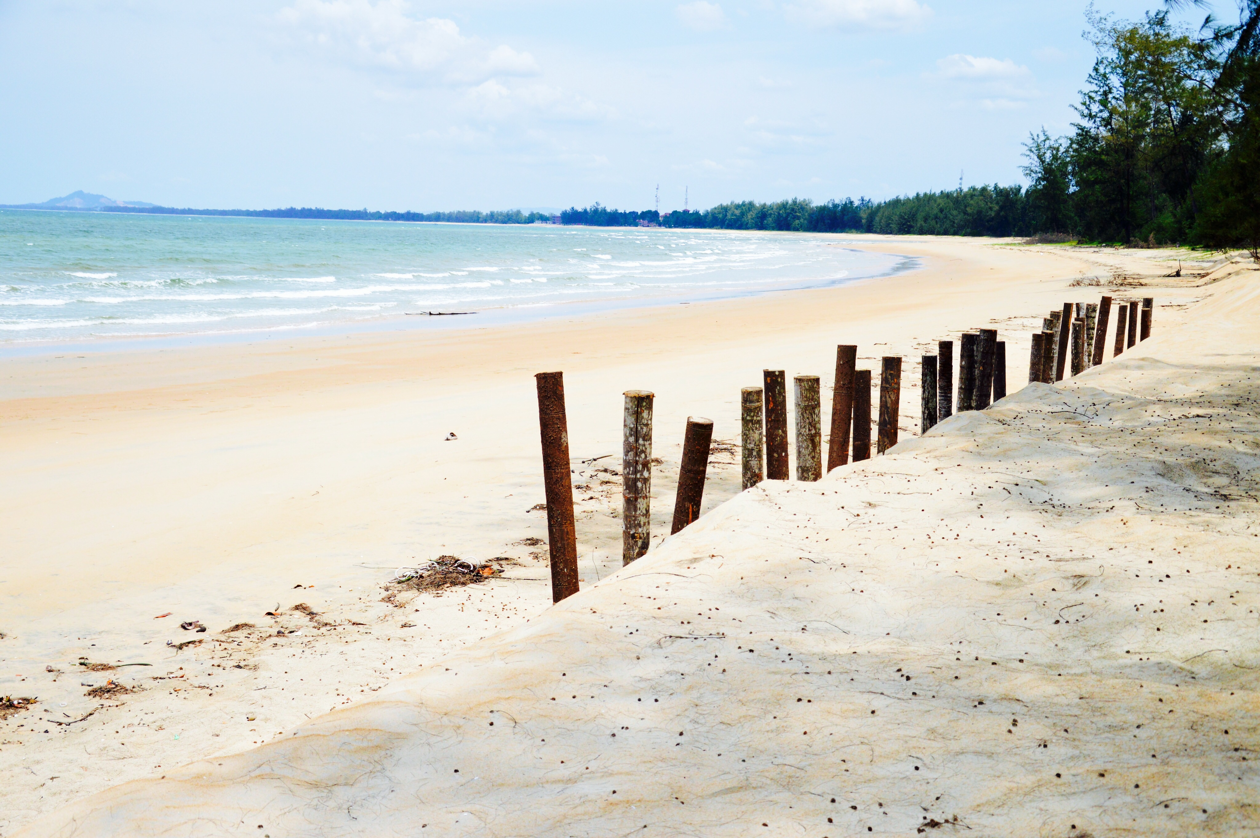 A sweeping white beach bordered by coconut palms and a small village of guesthouses and shops with more monkeys, monitor lizards and cats walking around than humans, Cherating is a popular spot for surfing and general beachfront slacking.